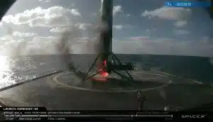 Nach diesem Start landete die erste Stufe wieder auf einer unbemannten Plattform (Of Course I Still Love You) im Atlantischen Ozean. Dabei hat die erste Stufe nach der Landung gebrannt.